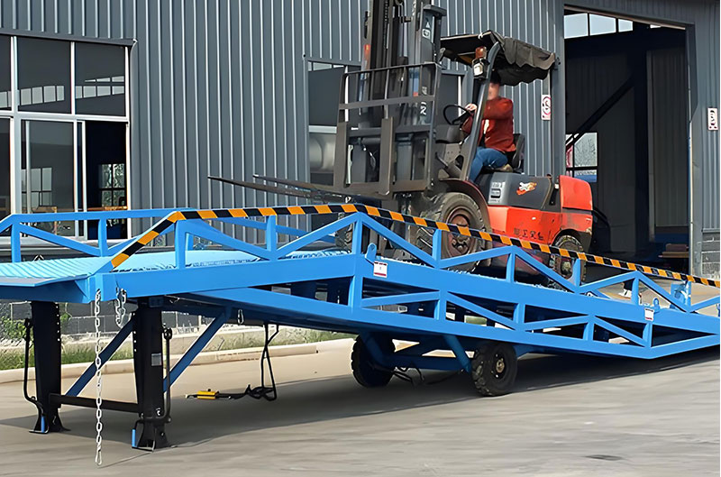 裝車平臺DCQY10-0.6在現代物流現場已是一非常易見的結構形式。它是企業物流鏈的起點與終點,是企業快速、安全周轉產品及貨物的一個裝卸貨操作平臺。 裝卸貨操作平臺的高度固定,但來往運輸車廂的廂地高度不一,運輸車輛與裝卸貨站臺之間總是形成一定的高度落差或間隙。造成搬運叉車不能進出運輸車輛直接裝 卸貨物。運用登車橋提供可靠的連接。使搬運叉車能夠安全、快速地進出運輸車輛進行裝卸貨作業。
